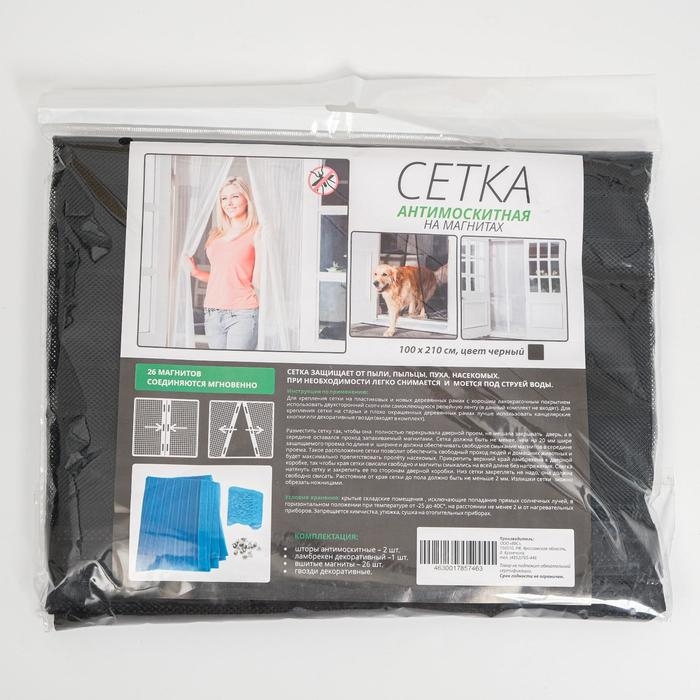 Сетка антимоскитная для дверей, 100 × 210 см, на магнитах, цвет черный