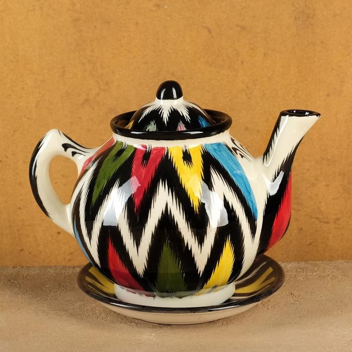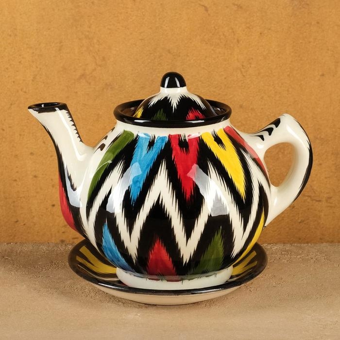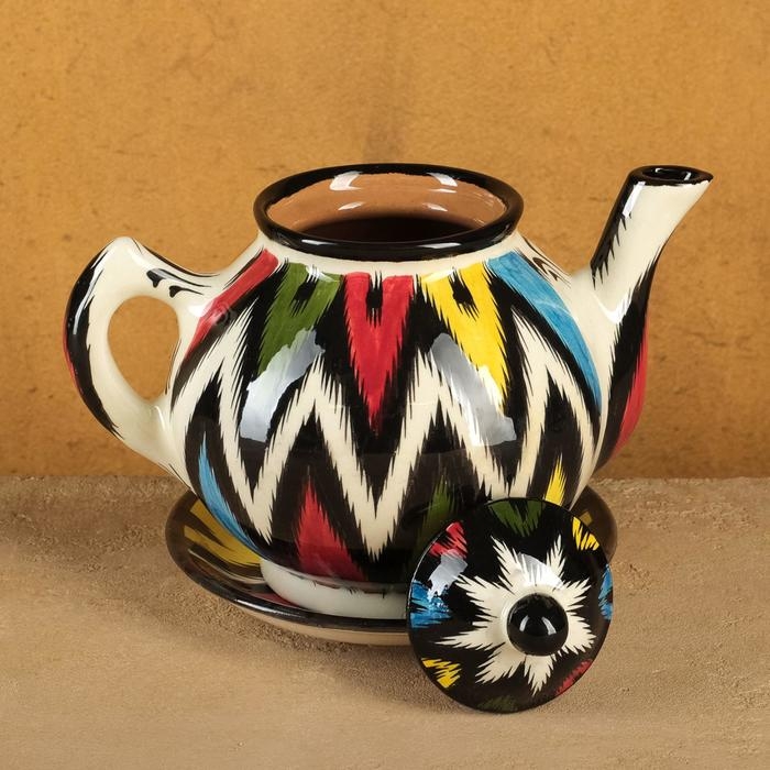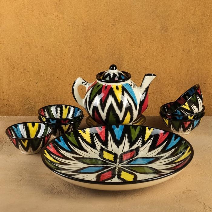Набор чайный Риштанская керамика "Атлас №3", 9 предметов (чайник 0,8л, пиалы 0,2л)