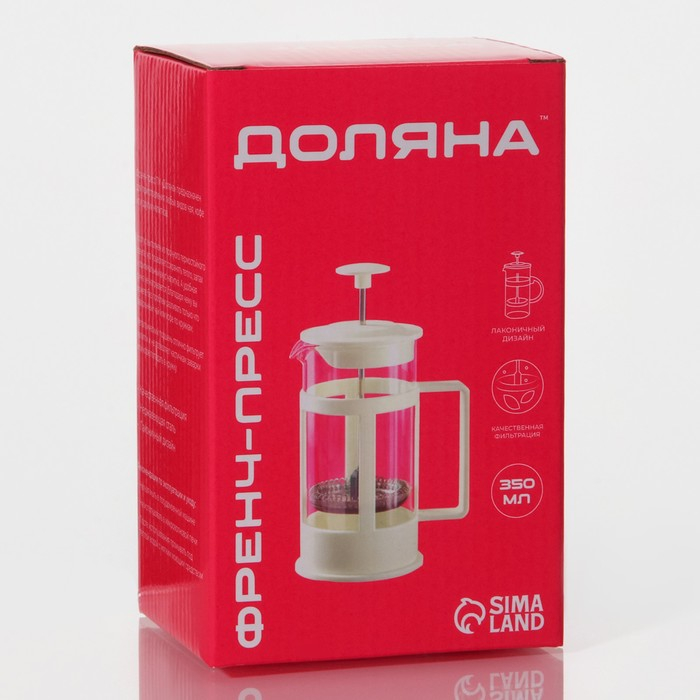 Чайник заварочный френч - пресс Доляна «Классика», 350 мл, стекло, цвет молочный