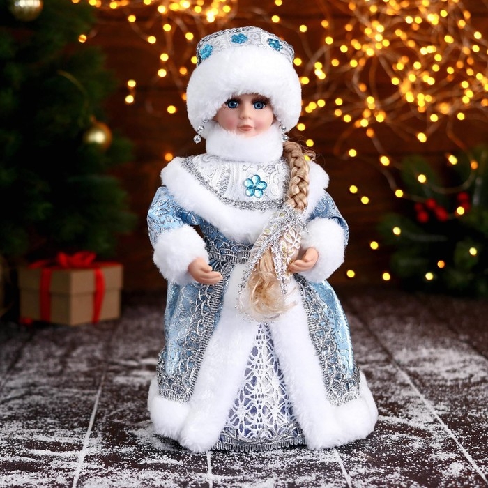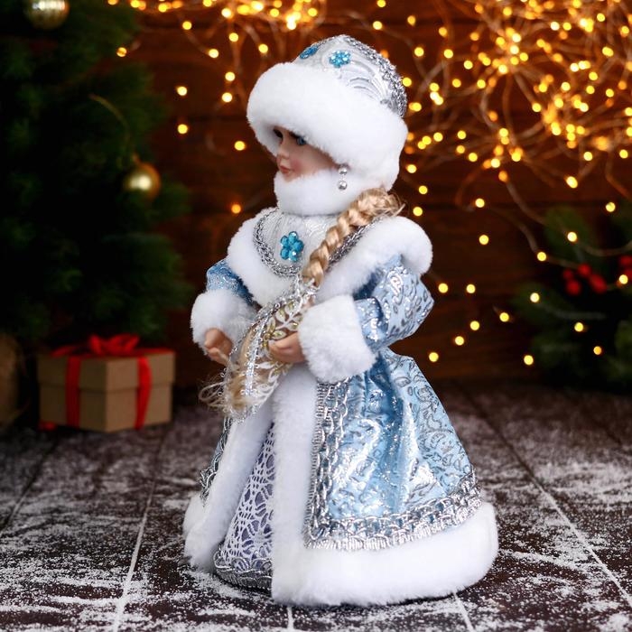 Снегурочка "В голубой шубке с цветами" двигается, 15х30 см