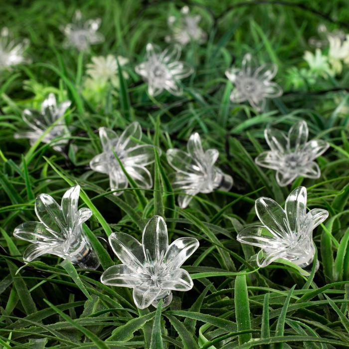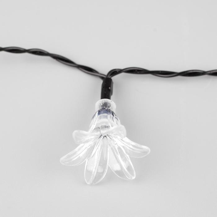 Гирлянда «Нить» 4.5 м с насадками «Лилии», тёмная нить, 30 LED, свечение белое, 2 режима, солнечная батарея