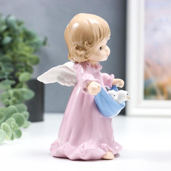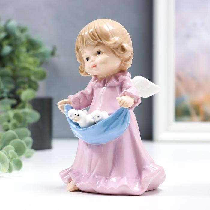 Сувенир керамика "Ангелочек в розовом платье, с цыплятами в подоле" 15 см