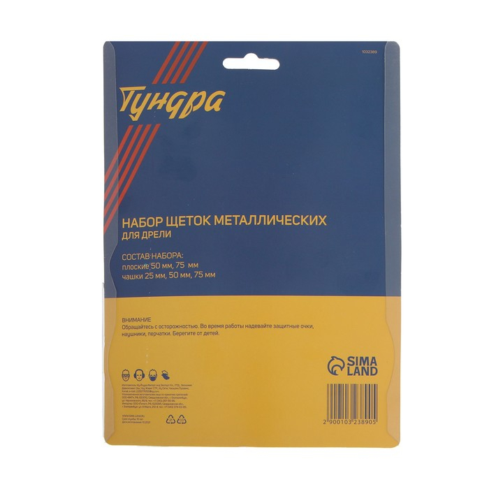 Набор щеток металлических для дрели ТУНДРА, плоские 50-75 мм, чашки 25-50-75 мм, 5 шт.