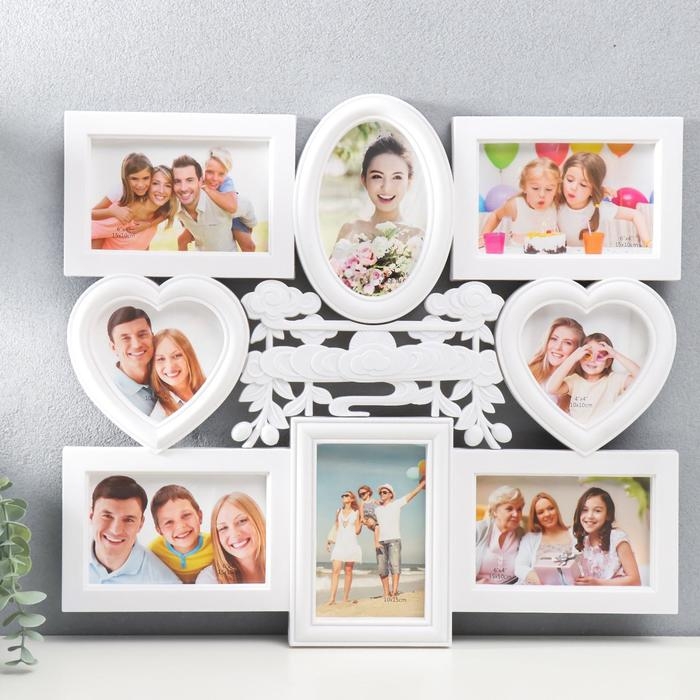 Фоторамка пластик на 8 фото 10х10, 10х15 см "Восход солнца" белый 44,5х49,5 см