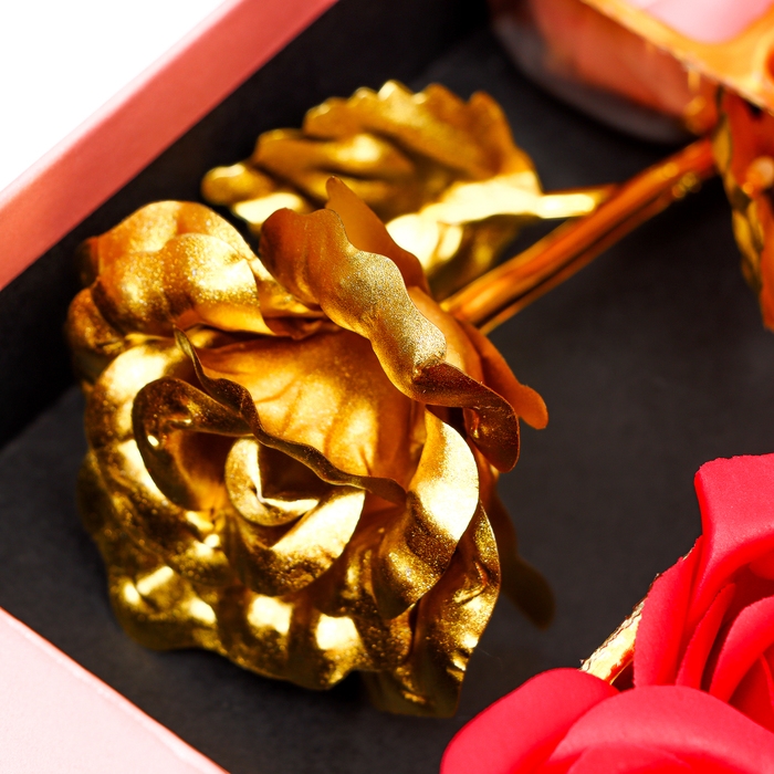 Мыльные розочки цветных оттенков и золотая роза, набор
