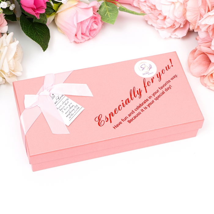 Набор мыльных роз в коробке 8 штук, розово-белые с зайчиком