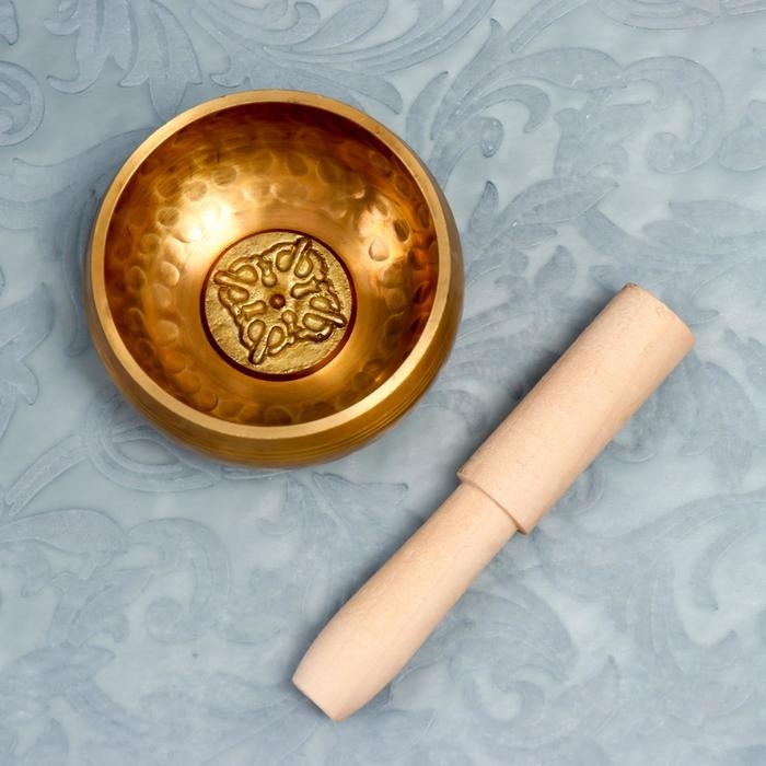 Поющая чаша металл золотая матовая "точки и цветок" с резонатором 4х8х8 см