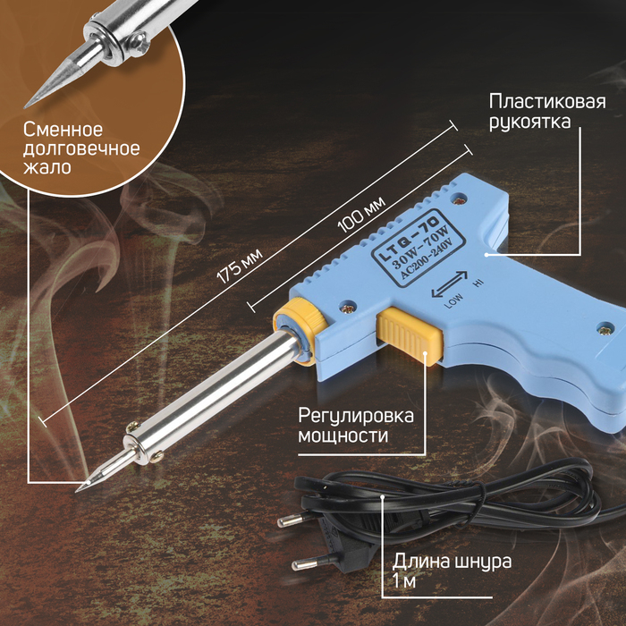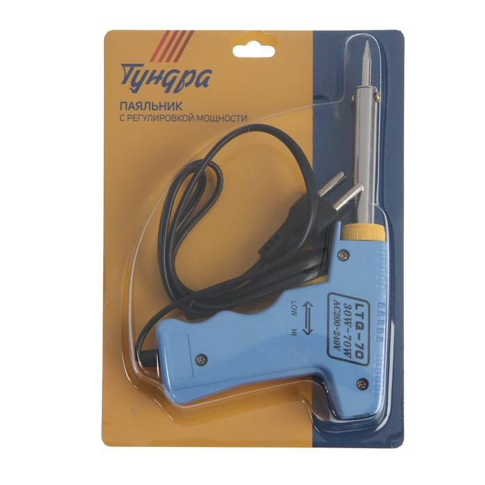 Паяльник-пистолет с регулировкой мощности ТУНДРА, 30-70Вт, 220 В