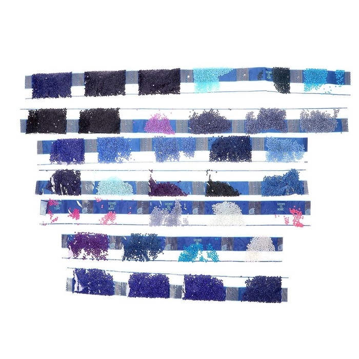 Разложите кристаллики с помощью карандаша по указанной схеме, заполнив всё полотно. На картине уже обозначены необходимые оттенки. Холст с клеевым покрытием будет надёжно удерживать стразы.