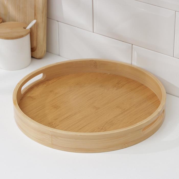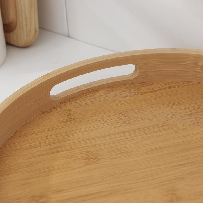 Поднос с ручками Доляна Striata, d=30 см, бамбук