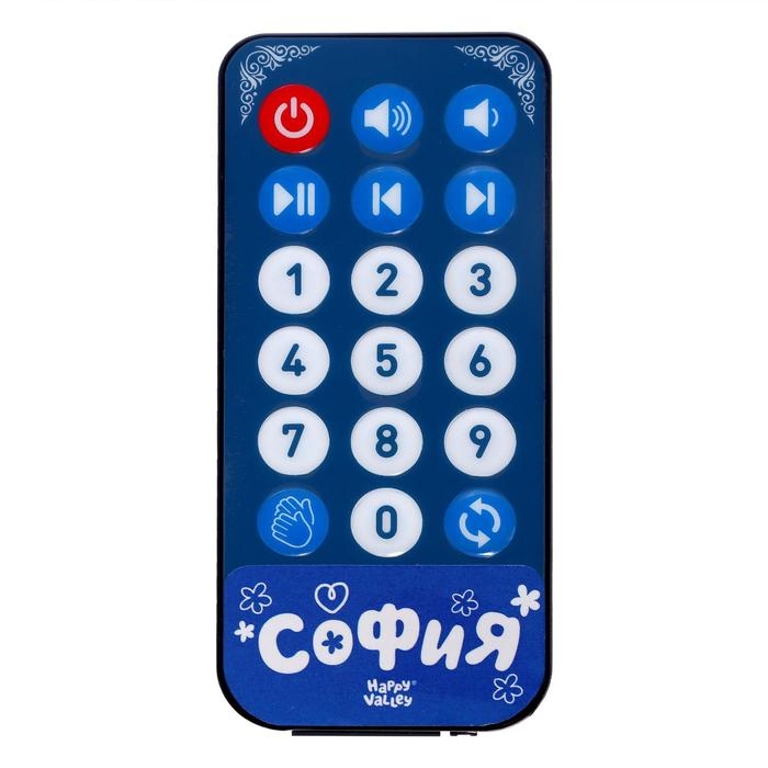 Чтобы начать общение с Софией, необходимо вставить батарейки в куклу и пульт управления, включить её и набрать номер вопроса на пульте.