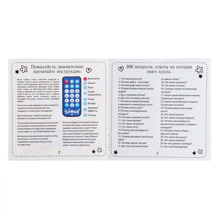 Кукла интерактивная «София», 300 вопросов и ответов на них