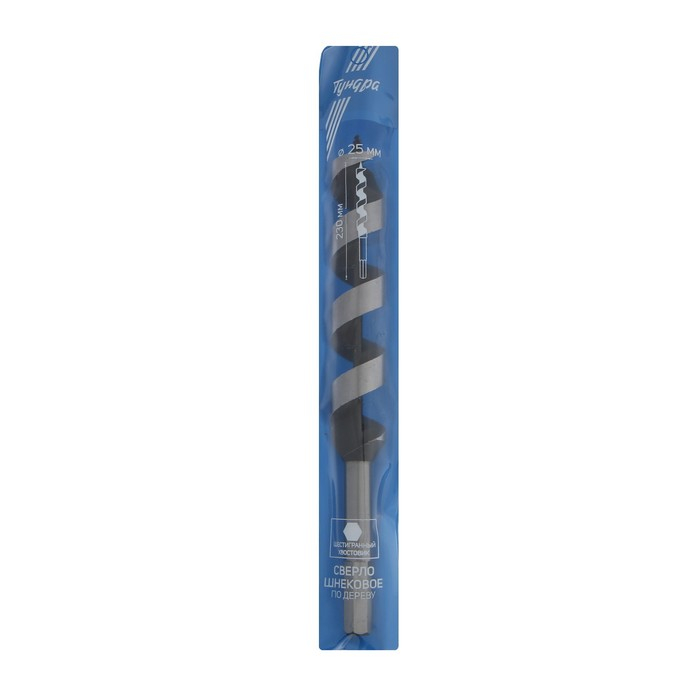 Сверло по дереву шнековое ТУНДРА, шестигранный хвостовик, 25 х 230 мм