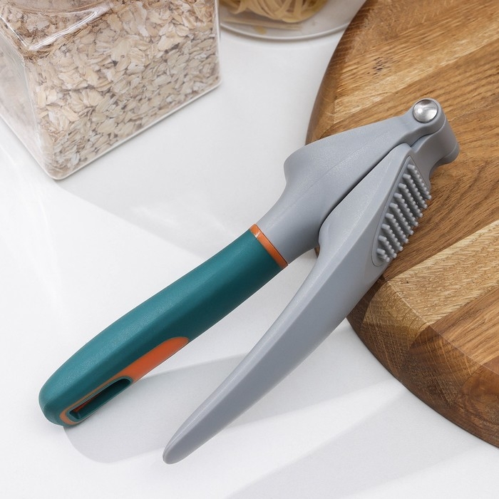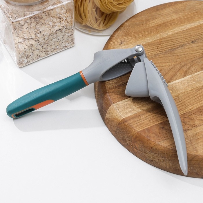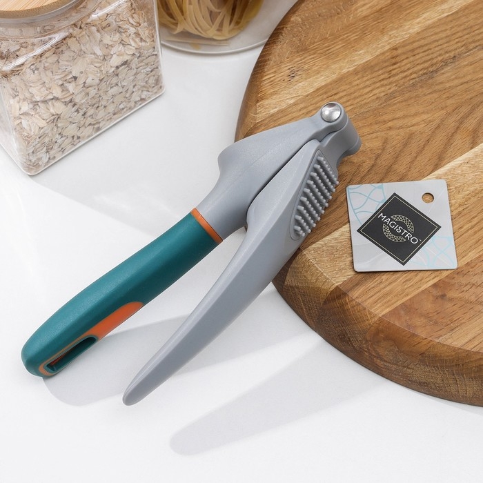 Пресс для чеснока Magistro Coral, 20,2×4,2×6,5 см, цвет зелёный, серый