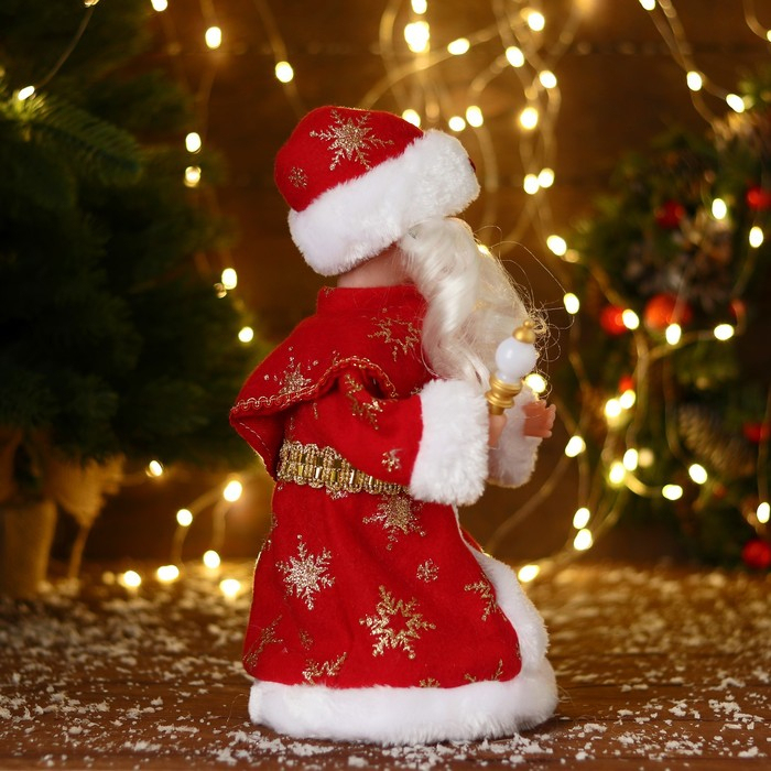 Дед Мороз "В красной шубе и шапке с жемчужинкой" 29 см, двигается