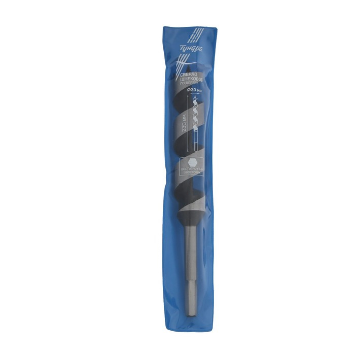 Сверло по дереву шнековое ТУНДРА, шестигранный хвостовик, 30 х 230 мм