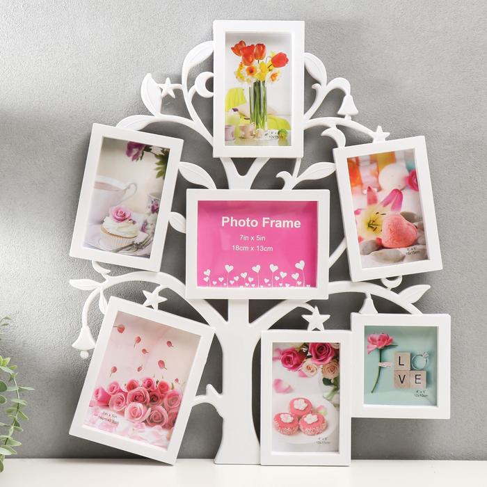 Фоторамка пластик на 7 фото 10х10 см, 10х15 см, 13х18 см "Деревце" белая 45х53х2 см