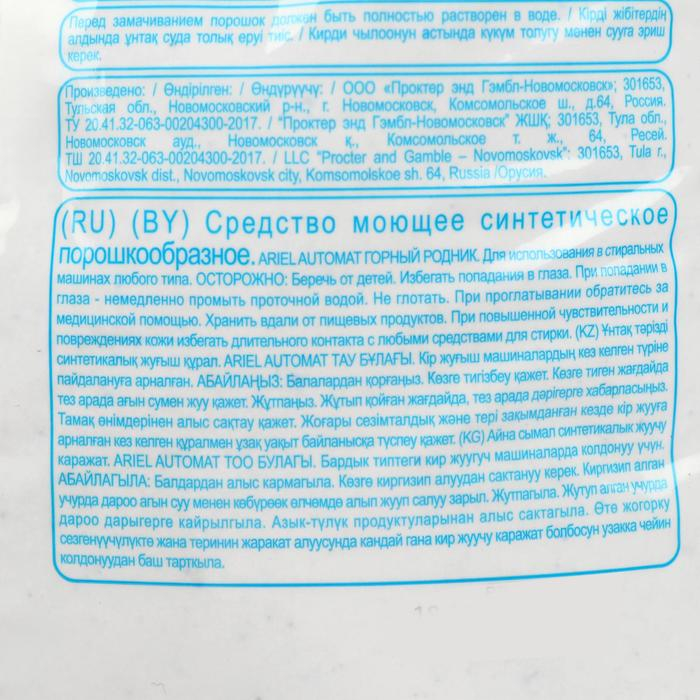 Порошок стиральный Ariel автомат "Горный родник", 3 кг