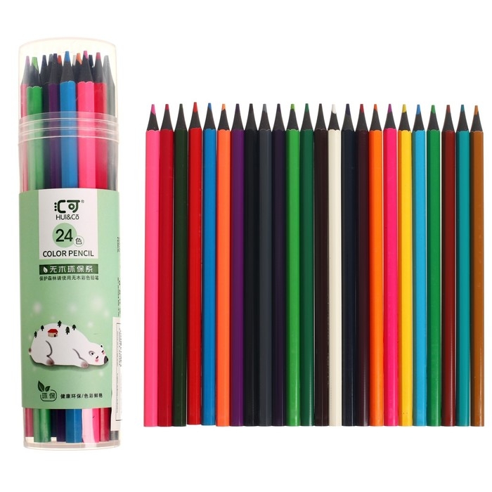 Карандаши 24 цвета в тубусе, корпус шестигранный,пластиковый, чёрное основание