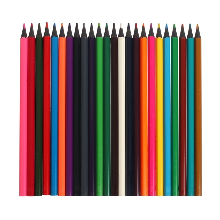 Карандаши двусторонние, заточенные, 12 штук, 24 цвета, корпус треугольный, деревянный, в картонной коробке
