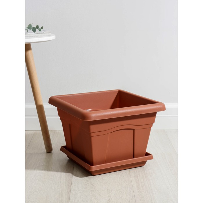 Горшок с поддоном «Квадро», 12,2 л, цвет терракотовый