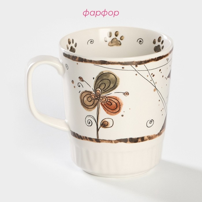 Кружка фарфоровая Доляна «Коты-аристократы», 350 мл, цвет белый