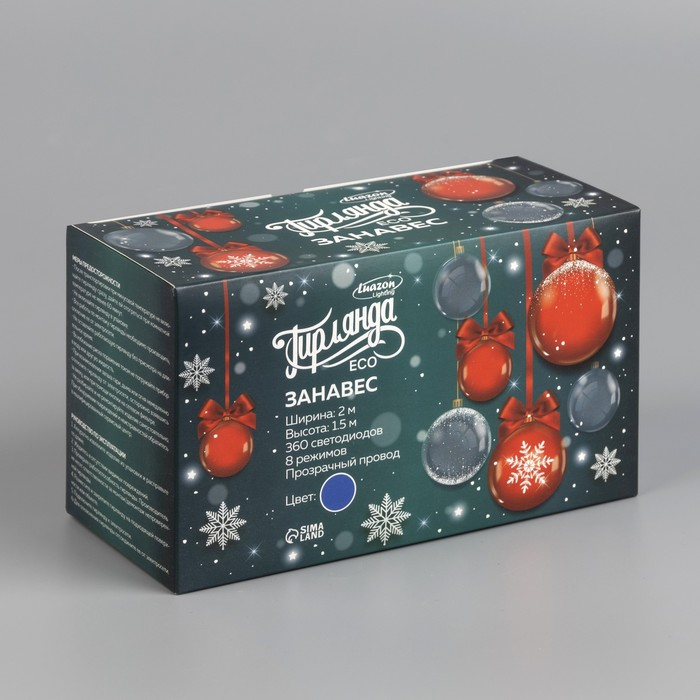 Гирлянда «Занавес» 2 × 1.5 м, IP20, прозрачная нить, 360 LED, свечение синее, 8 режимов, 220 В