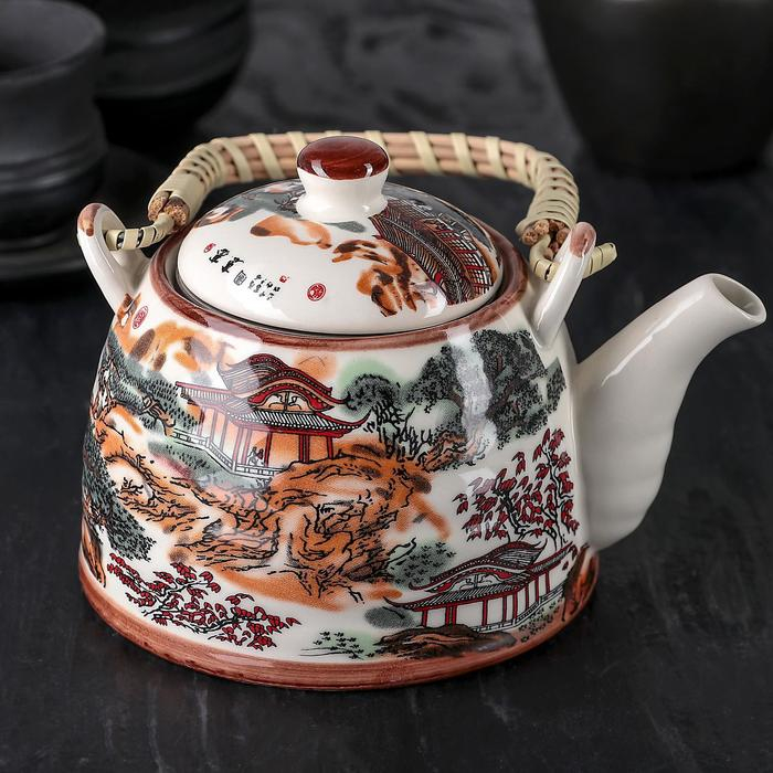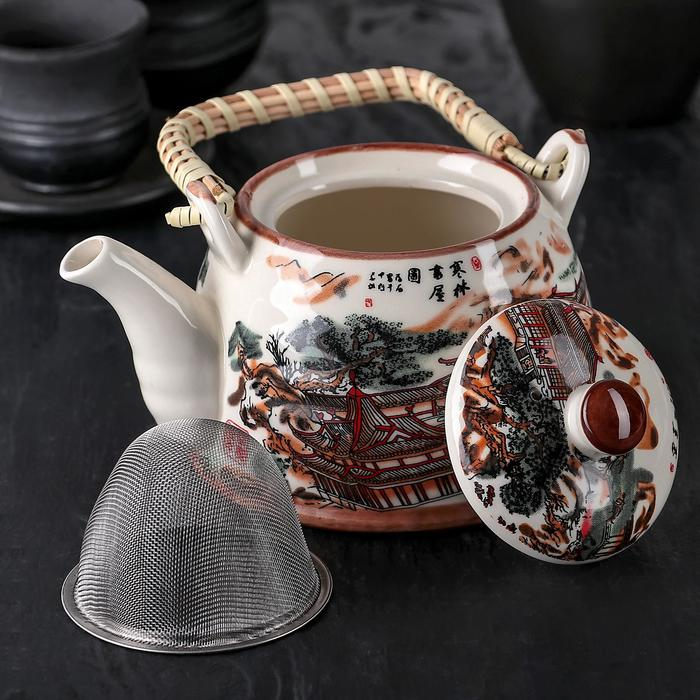 Чайник керамический заварочный с металлическим ситом «Пейзаж», 600 мл