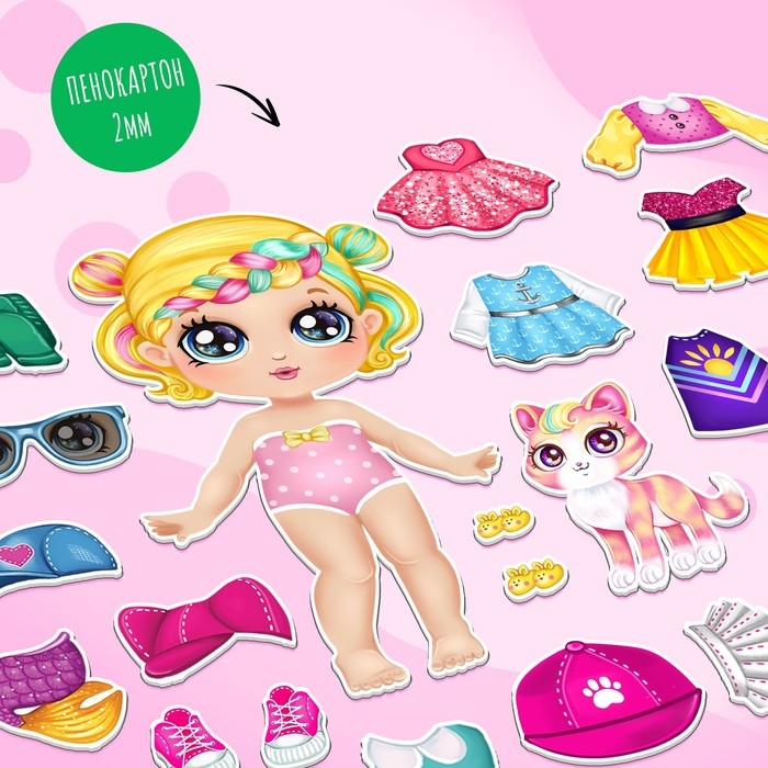 В комплекте 63 магнитных элемента. У ребёнка получится целых 16 модных образов.Отзывы