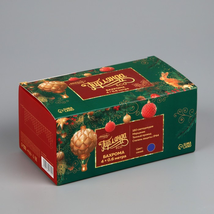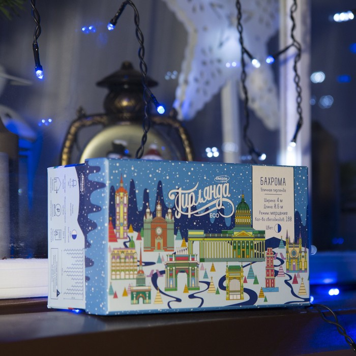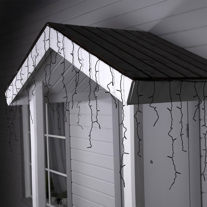 Гирлянда «Бахрома» 4 × 0.6 м, IP44, тёмная нить, 180 LED, свечение синее, мерцание белым, 220 В