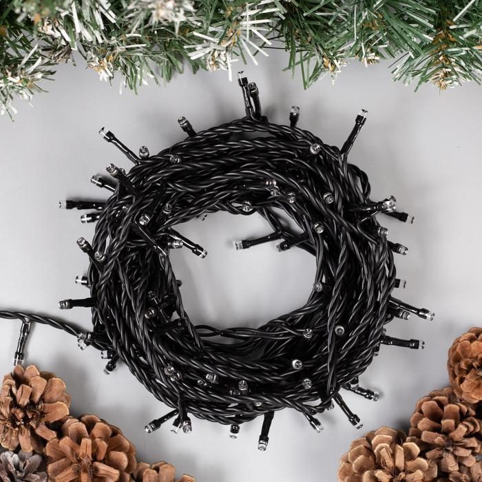 Гирлянда «Нить» 10 м, IP44, тёмная нить, 100 LED, свечение бело-синее, мигание, 220 В
