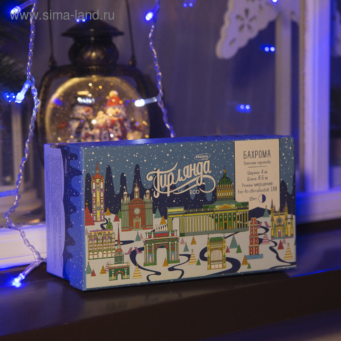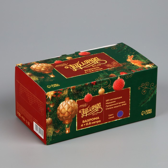 Гирлянда «Бахрома» 4 × 0.6 м, IP44, прозрачная нить, 180 LED, свечение синее, мерцание белым, 220 В