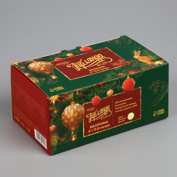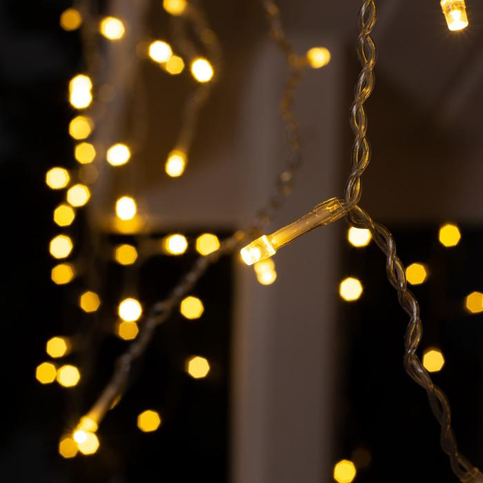 Гирлянда «Бахрома» 4 × 0.6 м, IP44, прозрачная нить, 180 LED, свечение тёплое белое, 8 режимов, 220 В