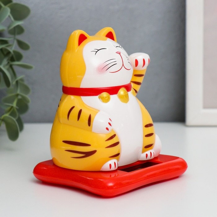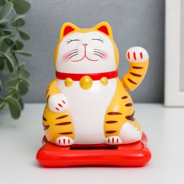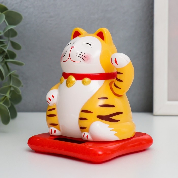 Маятник пластик от солнечной батареи "Кот манэки-нэко" жёлтый 9,5х10х9,5 см