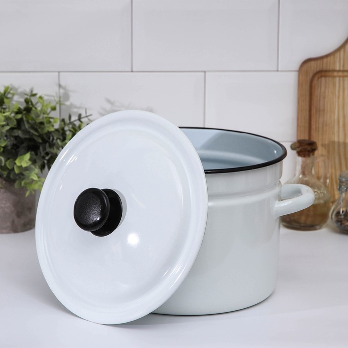 Кастрюля эмалированная без деколи, 6 л, цвет белый