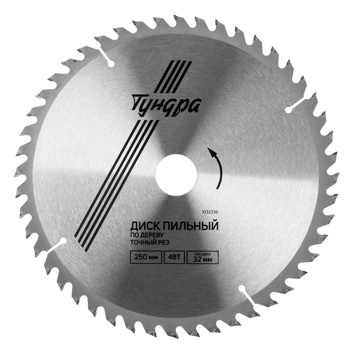 Диск пильный по дереву ТУНДРА, точный рез, 250 х 32 мм (кольца на 22,20,16), 48 зубьев