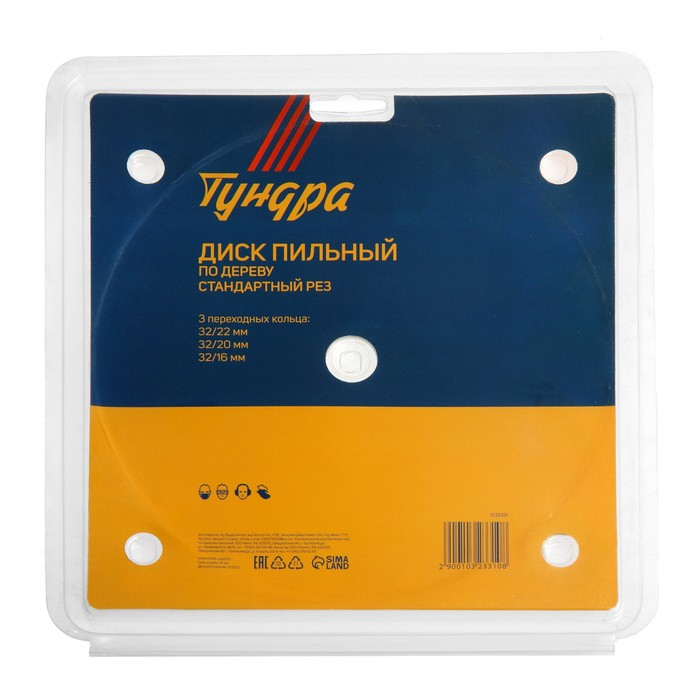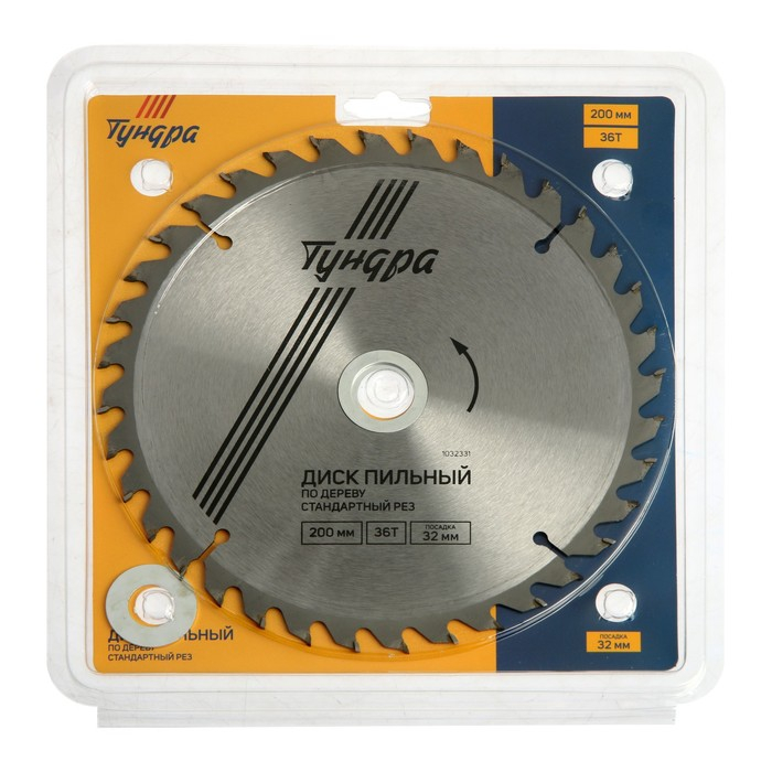 Диск пильный по дереву ТУНДРА, стандартный рез, 200 х 32 мм (кольца на 22,20,16), 36 зубьев