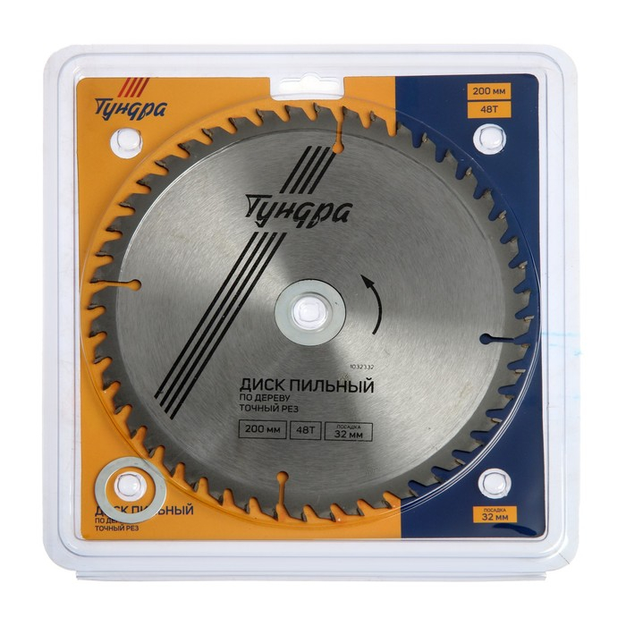 Диск пильный по дереву ТУНДРА, стандартный рез, 200 х 32 мм (кольца на 22,20,16), 48 зубьев