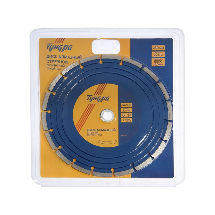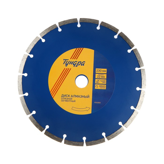 Диск алмазный отрезной ТУНДРА, сегментный, сухой рез, 230 х 22 мм