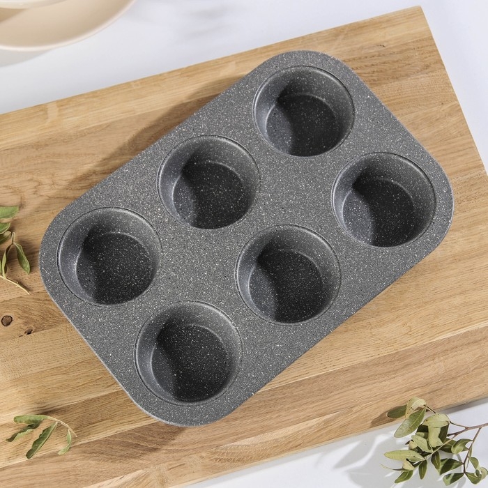 Форма для выпечки «Элин Мрамор. Кекс», 27,5×18×3 см, 6 ячеек, антипригарное покрытие, цвет серый