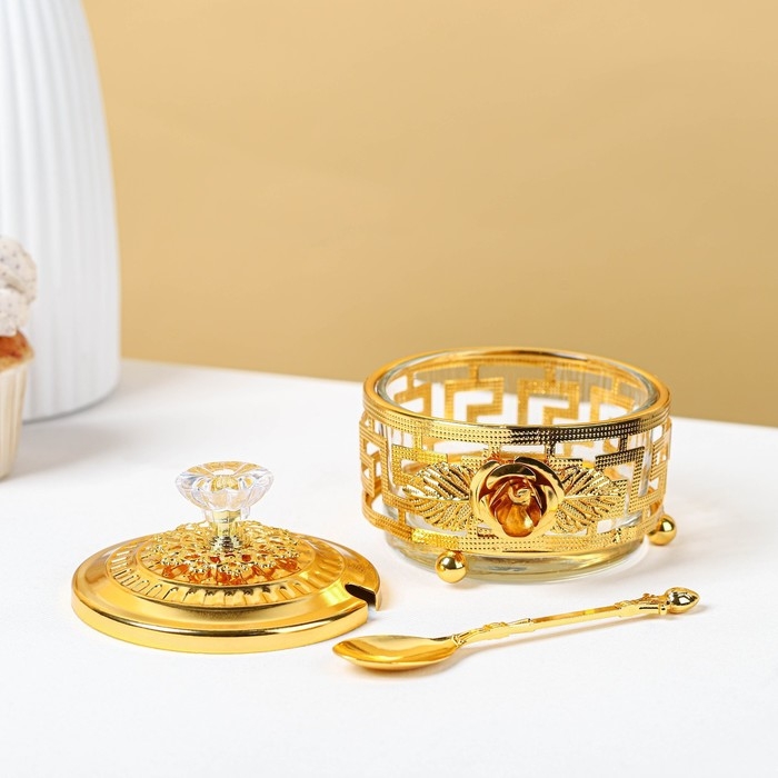 Сахарница «Роза» с ложкой, 200 мл, 9×10 см, цвет золотой