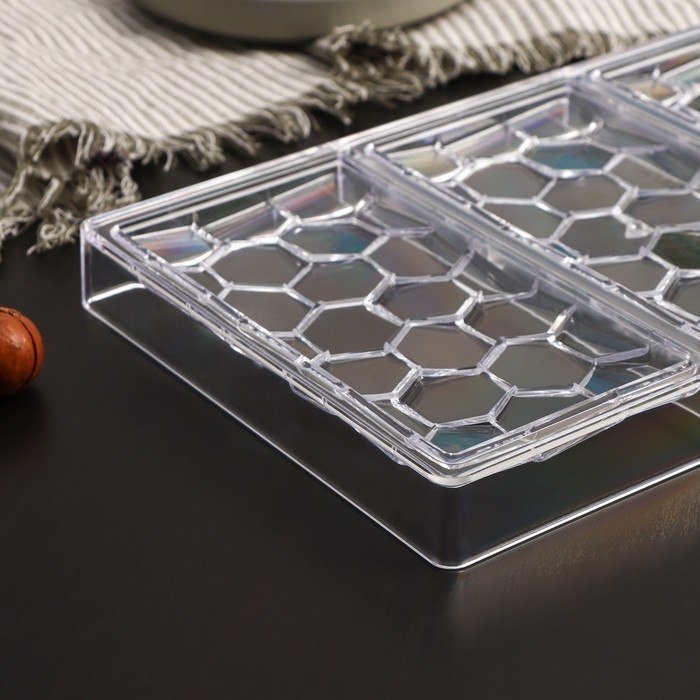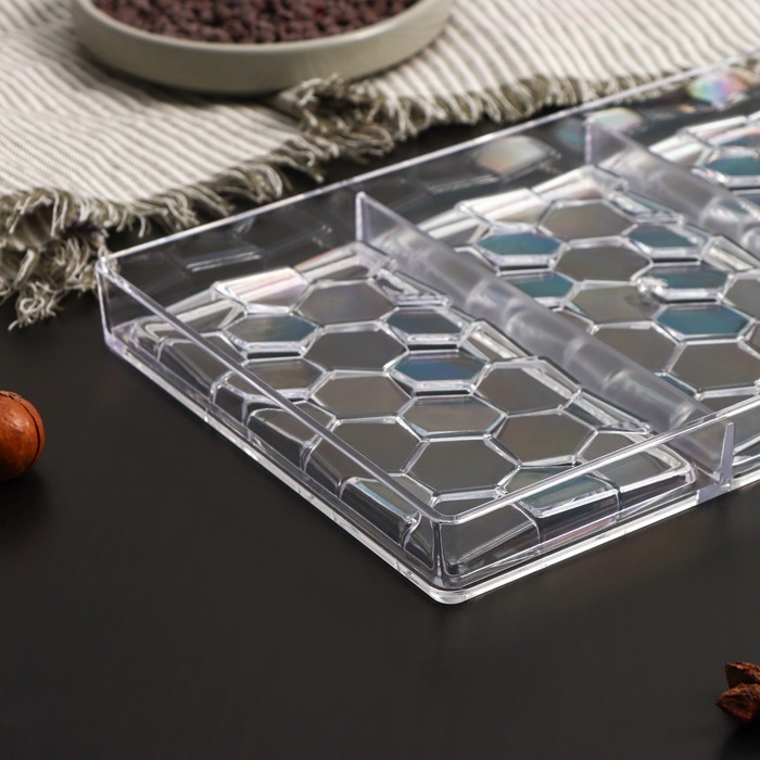 Форма для шоколада KONFINETTA «Соты», 27,5×17,5×2,5 см, 3 ячейки 15,3×7,5х0,8 см, цвет прозрачный