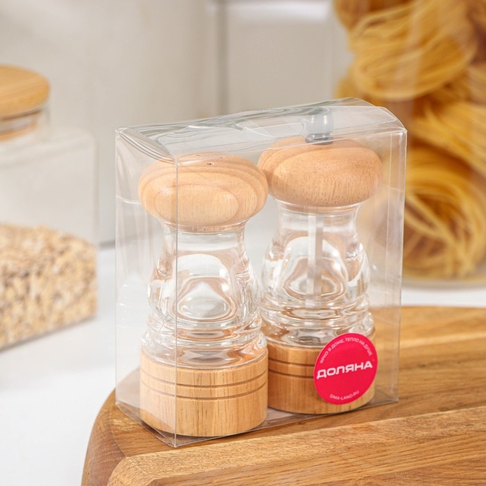 Набор мельниц для соли и перца Доляна, 2 предмета: 9,5×5 см, 10×5 см