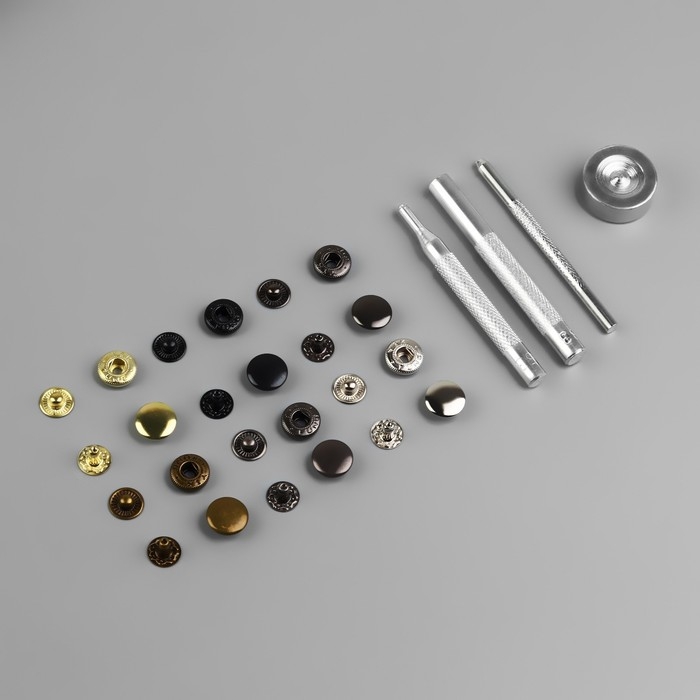 Набор S-образных кнопок с установщиком пригодится для создания или ремонта изделий из материалов разной плотности.