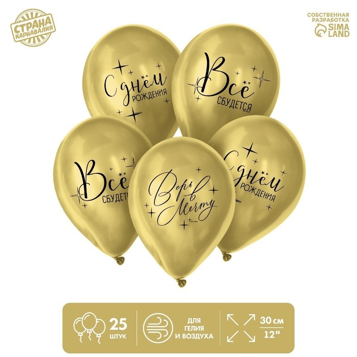 Воздушный шар латексный 12" «Всё сбудется», 25 шт.