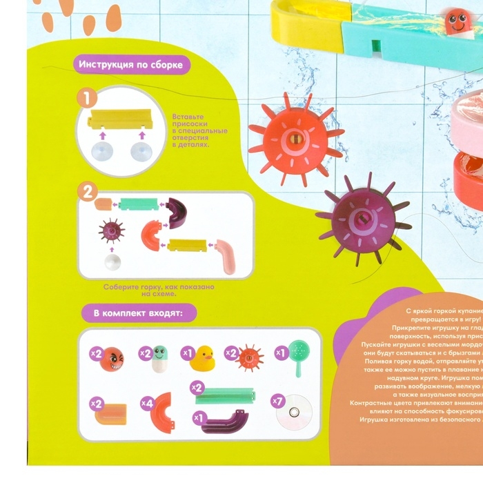 Игрушка для ванны «Водная горка», 11 деталей, 5 игрушек, ковш, на присосках, Крошка Я