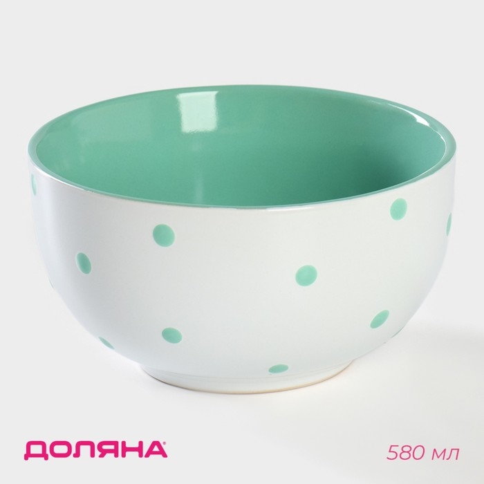 Салатник керамический Доляна «Горошек», 580 мл, цвет мятный