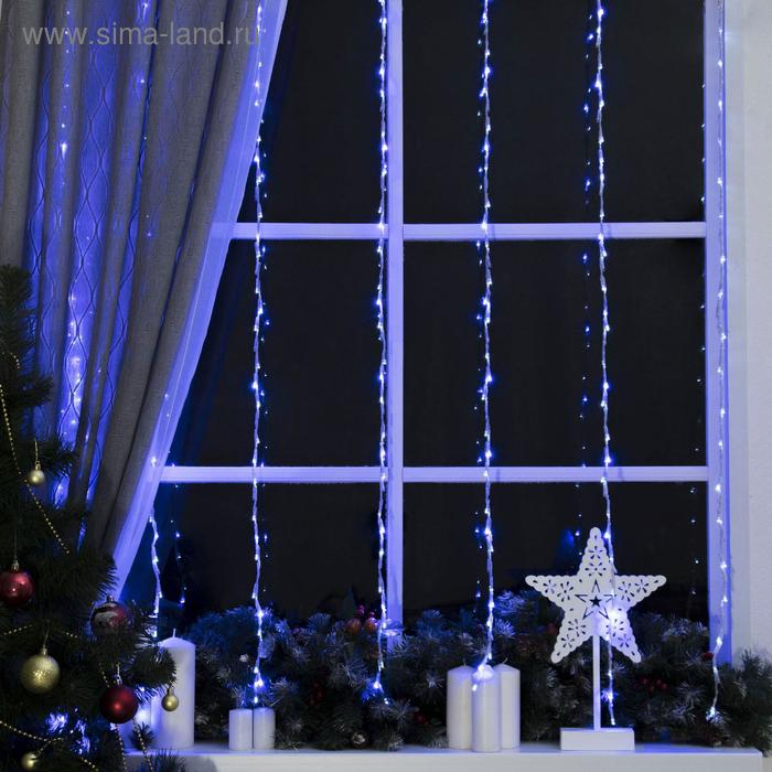 Гирлянда «Водопад» 2 × 1.5 м, IP20, прозрачная нить, 400 LED, свечение белое/синее, 8 режимов, 220 В