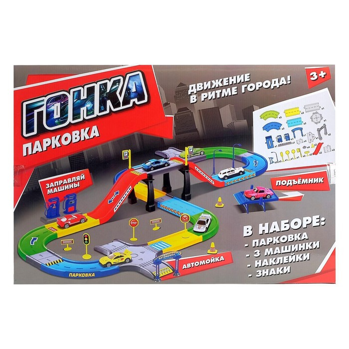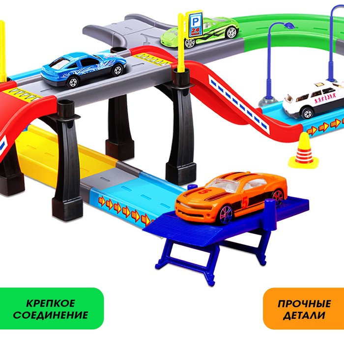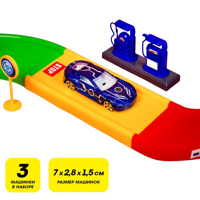 Гараж трасса «Крутой вираж», 3 металлические машины, аксессуары