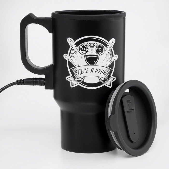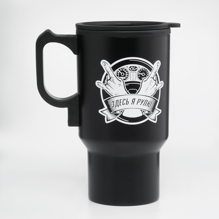 Термокружка, 450 мл, Автомобильная "Здесь я рулю", сохраняет тепло 4 ч, 12 х 17 см